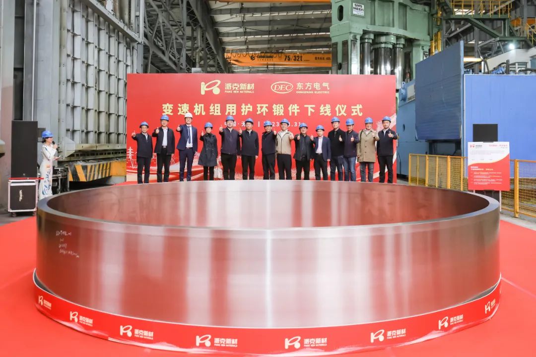 自2022年以来,壹号娱乐官网电机联合派克科技开展变速机组转子护环锻件技术攻关,最终成功攻克各项难题,填补了超大直径(约5米)非磁性金属护环锻件国产化制造空白,实现了中国制造从无到有的跨越,为全面掌握变速抽蓄机组核心技术奠定坚实基础,未来也必将在国产化首台套示范项目中再展新作为。