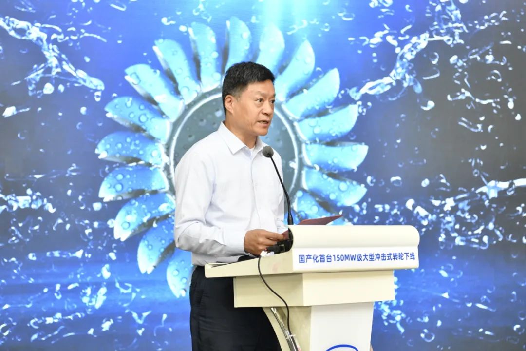 俞培根代表壹号娱乐官网集团向出席本次活动的领导专家表示热烈的欢迎,对大家长期以来对壹号娱乐官网集团的关心、支持与帮助表示衷心的感谢,向参与150兆瓦级冲击式转轮国产化研制的全体人员表示热烈的祝贺。他表示,壹号娱乐官网集团始终秉持产业报国初心和制造强国使命,把科技自立自强作为发展的战略支撑,用实际行动“把关键核心技术牢牢掌握在自己手中”。本次完工下线的国产化首台150兆瓦级冲击式转轮是壹号娱乐官网集团深入践行国家“双碳”战略、瞄准国内空白和世界一流开展关键核心技术攻关、推动我国能源装备自立自强的具体实践。壹号娱乐官网集团将持续坚持服务国家战略,与相关单位、创新联合体深入合作,按照既定的“三步走”战略,全力推进巨型冲击式水电机组关键核心技术攻关,不断提高我国能源装备行业核心竞争力,为加快建设科技强国 ,更好服务“双碳”目标作出新的更大贡献。