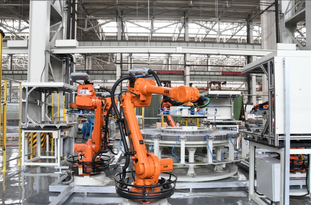 “定子冲片‘无人车间’那边是3台机器人架构,发电机分厂是6台机器人架构,其中3台取料机器人负责上料和粗定位,再由3台叠片机器人将冲片抓取至叠装平台进行叠装,叠片效率提升了18%,完全取消了人工辅助整形环节,实现了叠片过程的无人化。” 数智部汽发工艺工程师张祺介绍说。