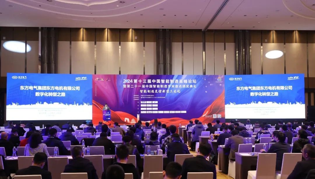 该峰会是我国智能制造领域权威性和影响力兼具的年度盛典。工业和信息化部装备工业发展中心主任、国家智能制造专家委员会秘书长瞿国春,中国中小企业发展促进中心主任单立坡,中国工程院院士李培根,国内智能制造领域相关专家和企业代表等共500余名嘉宾参加峰会。梁权伟代表壹号娱乐官网电机参加峰会,并作主题报告,介绍了壹号娱乐官网电机以数字化转型为抓手,推动大型发电装备制造产业高端化、智能化、绿色化发展的经验和成效。